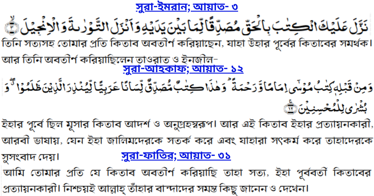 কুরআন একমাত্র আল্লাহর কাছ থেকে নাযিলকৃত যাহা সুস্পষ্টভাবে প্রমাণিত